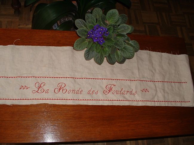 Je viens tout juste de terminer ma broderie de "la ronde des foulards" qui fera le tour de ma boite .... à foulards !!!